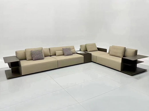 梵纳意简 极简 接触面头层牛皮+多层实木板+实木框架+高回弹海绵+不锈钢五金+羽绒 右转角沙发 Q361网红 极简钢琴键4.1米沙发