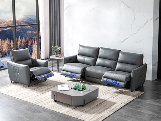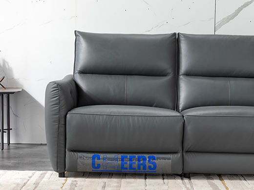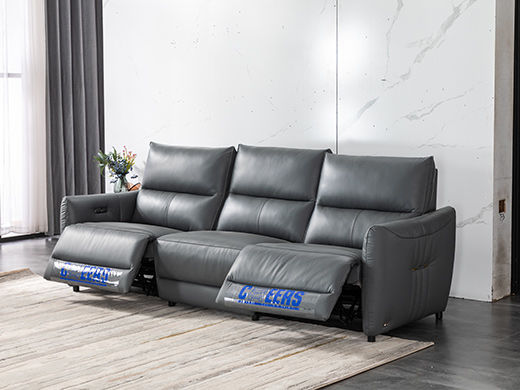 甄品家具 现代简约 接触面进口头层牛皮+进口 落叶松+高 回弹海绵+高承重碳 钢功能架+零靠墙锐迈电机+单电动功能 碳素钢脚 3米 三人位 单电动功能沙发