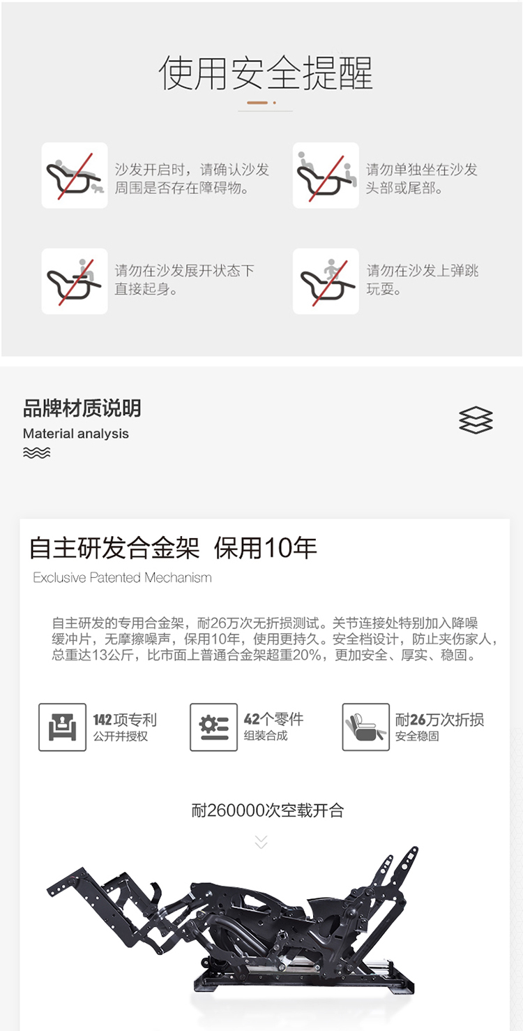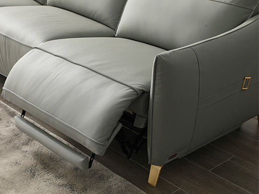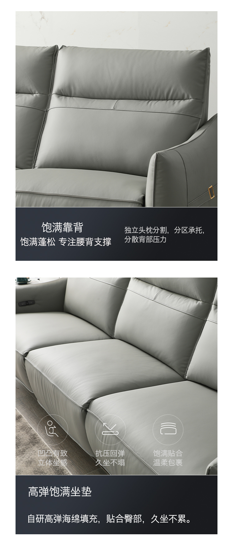 甄品家具 现代简约 接触面进口头层牛皮+进口 落叶松+高 回弹海绵+高承重碳 钢功能架+零靠墙锐迈电机+单电动功能 碳素钢脚 3米 三人位 单电动功能沙发