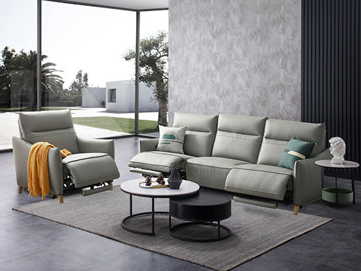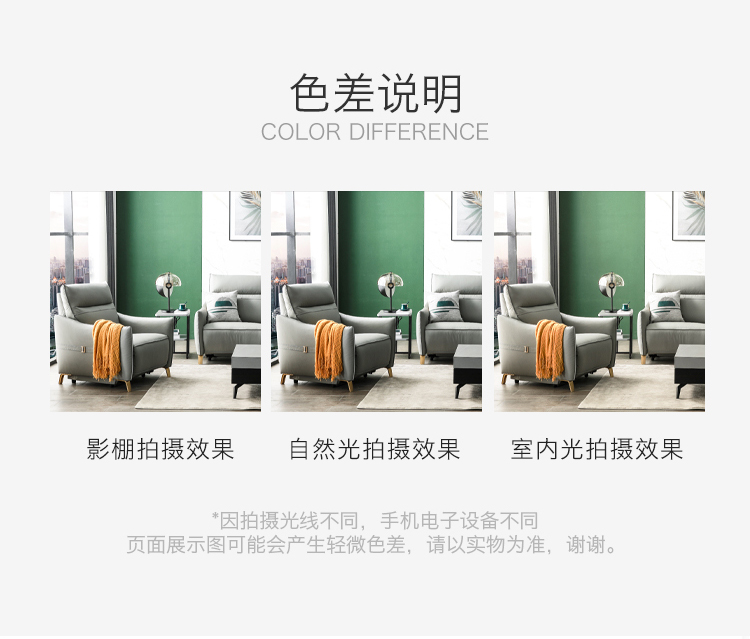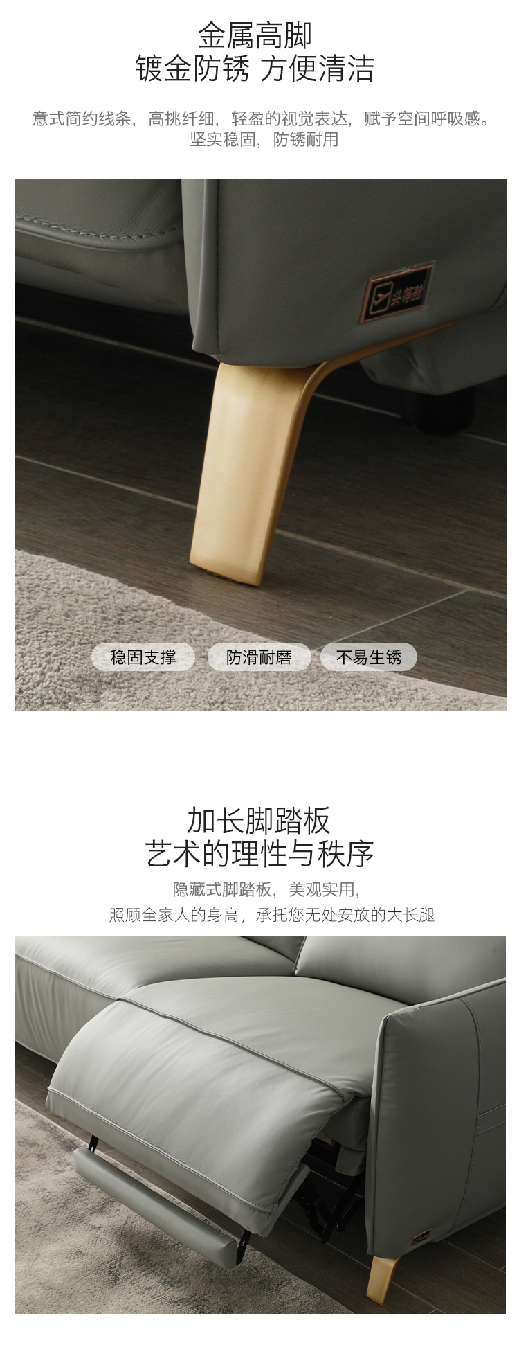 甄品家具 现代简约 接触面进口头层牛皮+进口 落叶松+高 回弹海绵+高承重碳 钢功能架+零靠墙锐迈电机+单电动功能 碳素钢脚 3米 三人位 单电动功能沙发