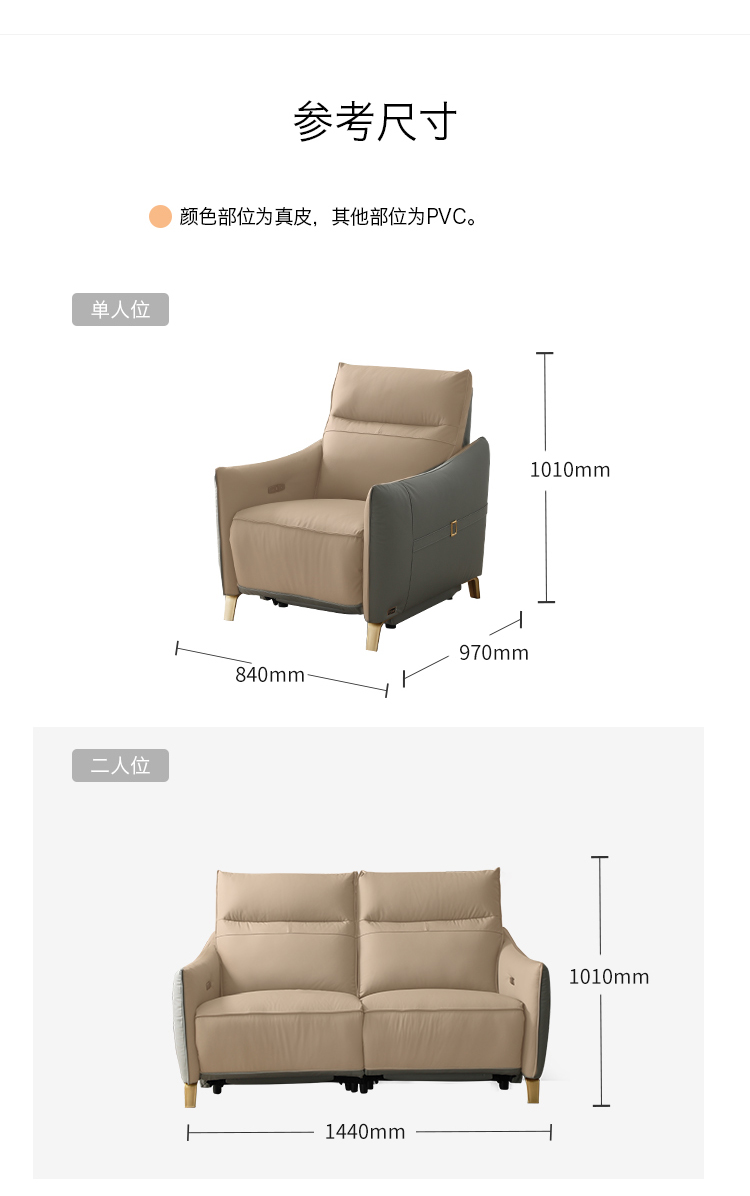 芝华仕 现代简约 接触面进口头层奶牛皮+科技布+合金钢架+进口实木+多层实木板+合金脚+太空绵+高回弹海绵 大二人位【双电机】皮艺1.44米沙发