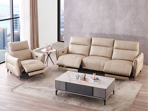 芝华仕 现代简约 接触面进口头层奶牛皮+PVC+合金钢架+进口实木+多层实木板+合金脚+太空绵+高回弹海绵 三人位【双电机】皮艺功能2.63米沙发 |