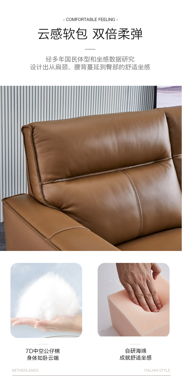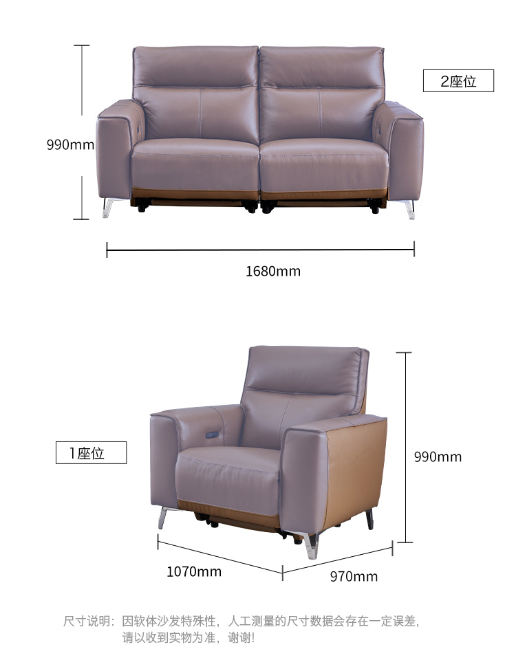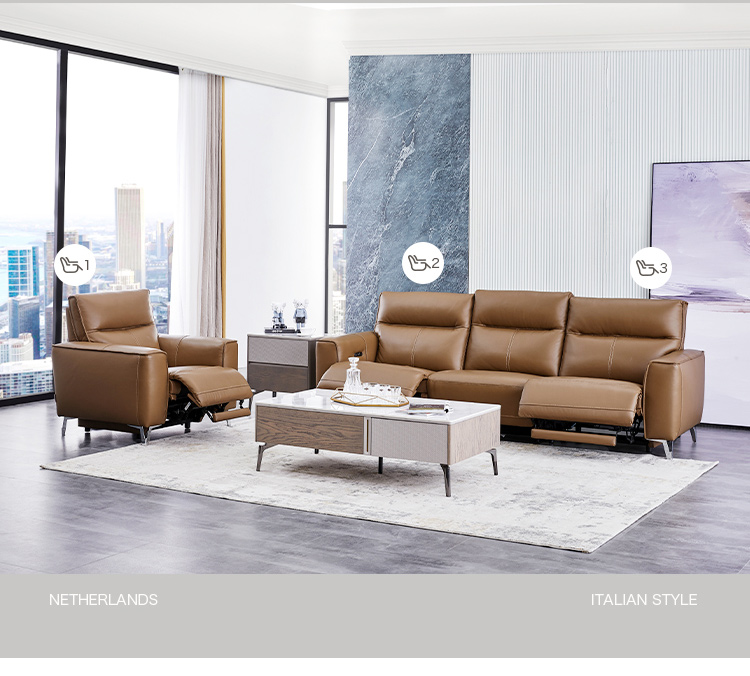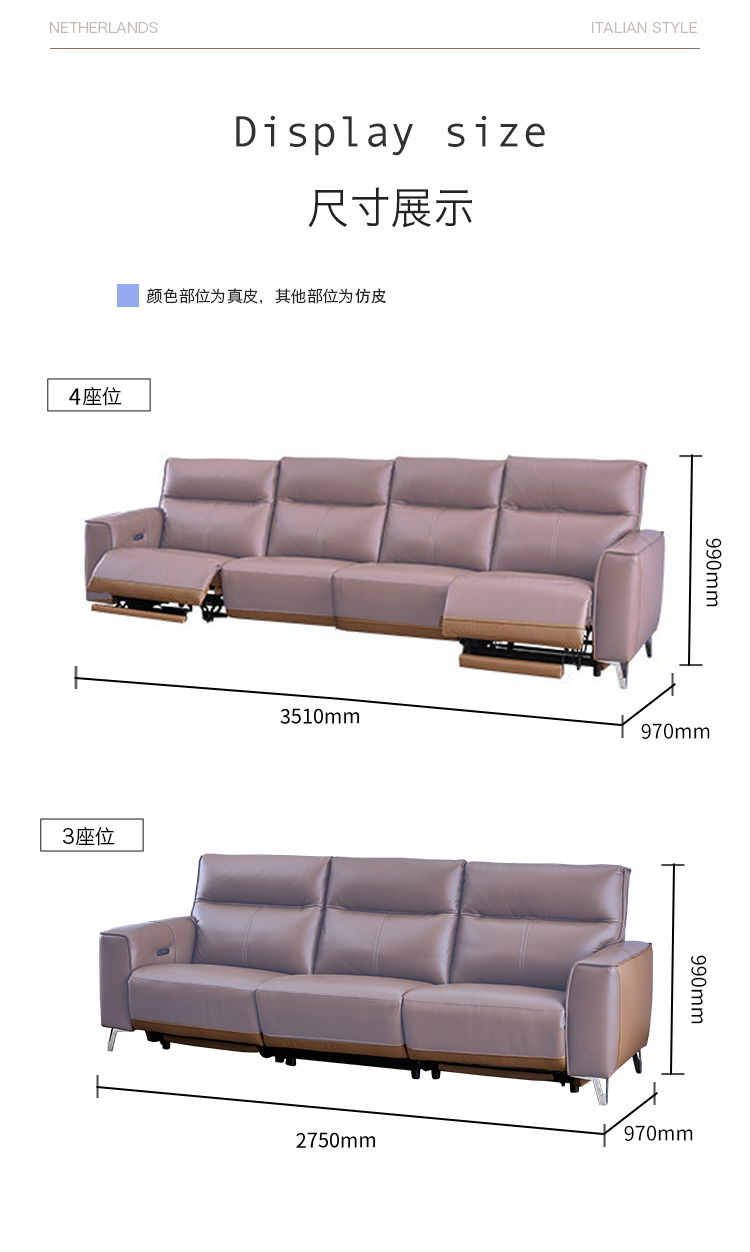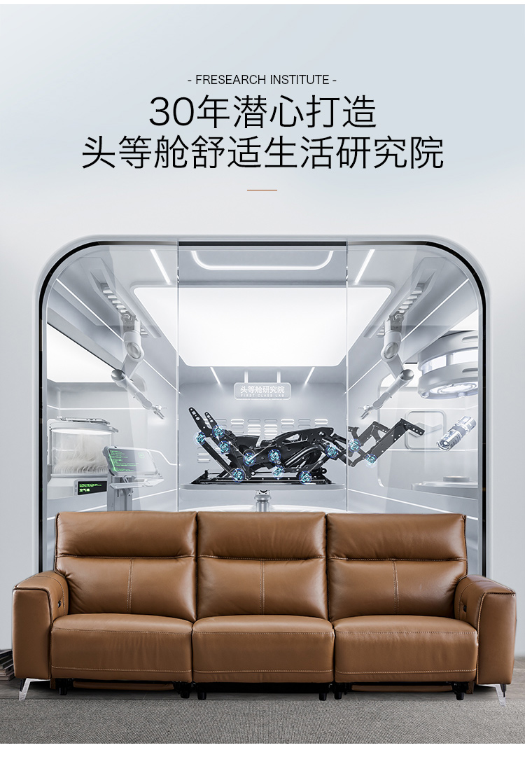 甄品家具 现代简约 接触面进口头层牛皮+进口 落叶松+高 回弹海绵+高承重碳 钢功能架+零靠墙锐迈电机+单电动功能 碳素钢脚 3米 三人位 单电动功能沙发