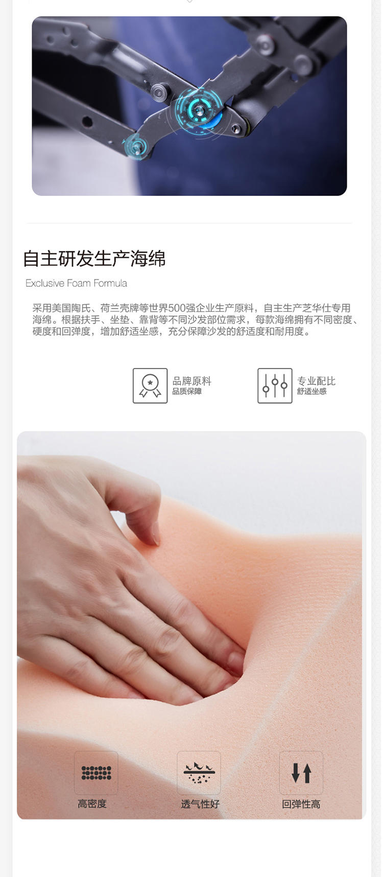 芝华仕 现代简约 接触面头层真皮+太空棉+冰雪棉+高回弹海绵+合金钢架+专利电机+进口实木+合金刚架脚+塑胶防刮胶套 1+3+左贵妃【坐右单电机】功能转角皮艺3.4米沙发芝华仕 现代简约 接触面进口头层奶牛皮+PVC+合金钢架+进口实木+多层实木板+合金刚架脚+塑胶防刮胶套+太空绵+高回弹海绵 三人位【双电机】皮艺功能2.76米沙发