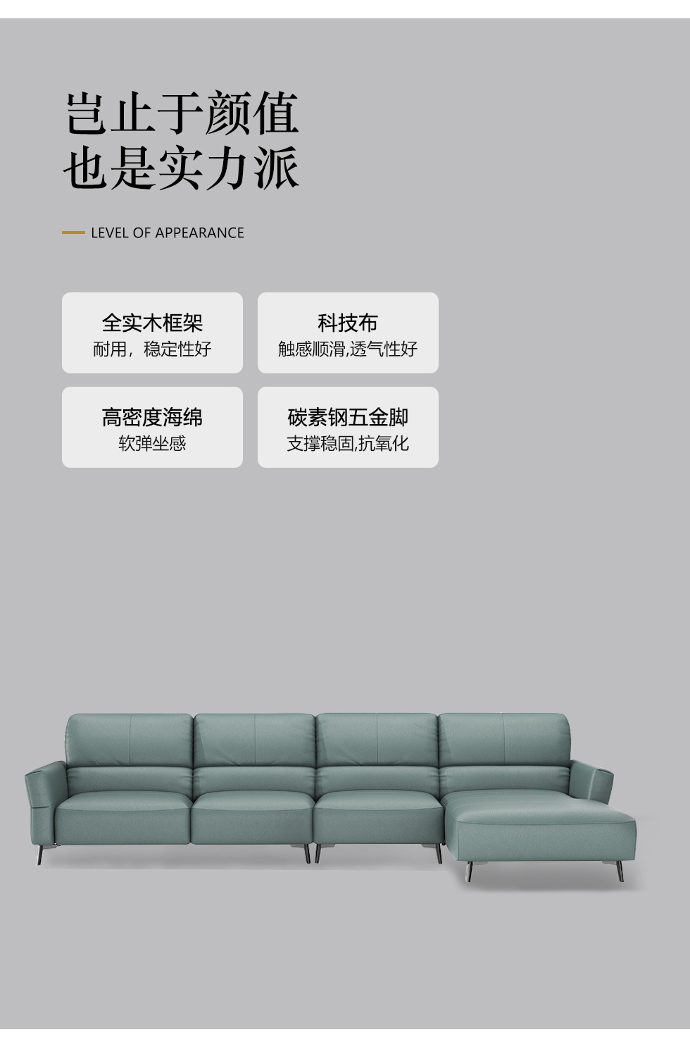 A系优选 现代简约 科技布+坐垫+实木落叶松框架 +靠背公仔棉 3.4米布艺转角沙发(3+1+左直角贵妃)¥8924