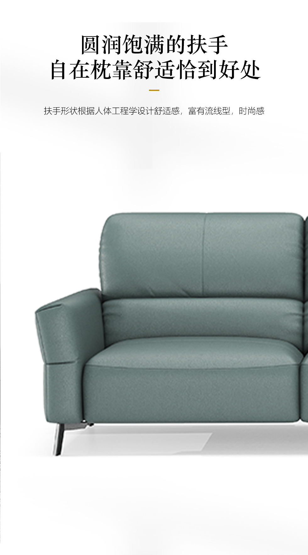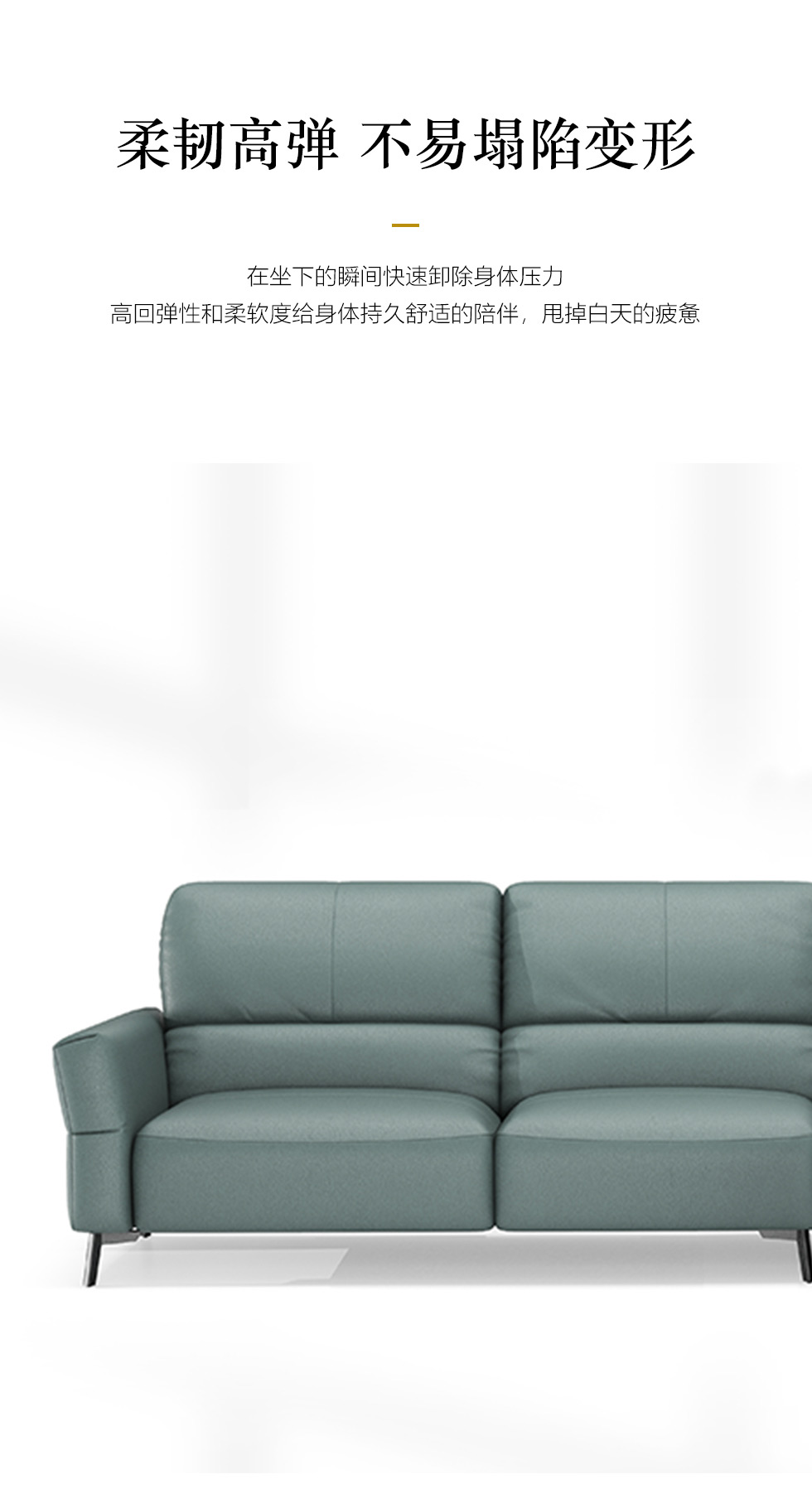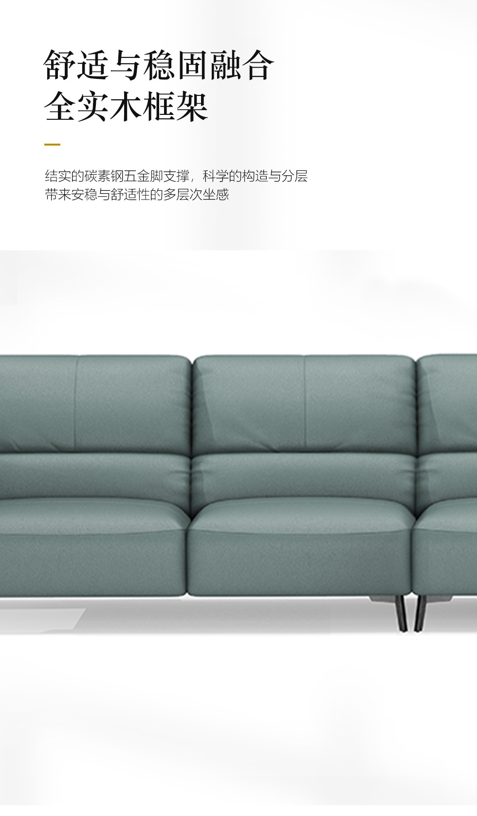 左右家居 现代简约 接触面头层牛皮 进口落叶松实木框架+蛇形弹簧系统+水性胶 高密度海绵 3.19米沙发