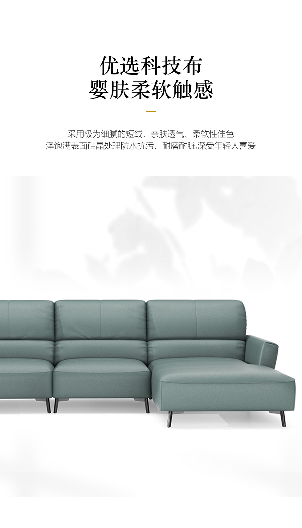 卡姿莱特·新居客 现代简约 科技布 落叶松木方+夹板+碳素钢五金脚 1+3+贵妃 3.4米 沙发¥8155