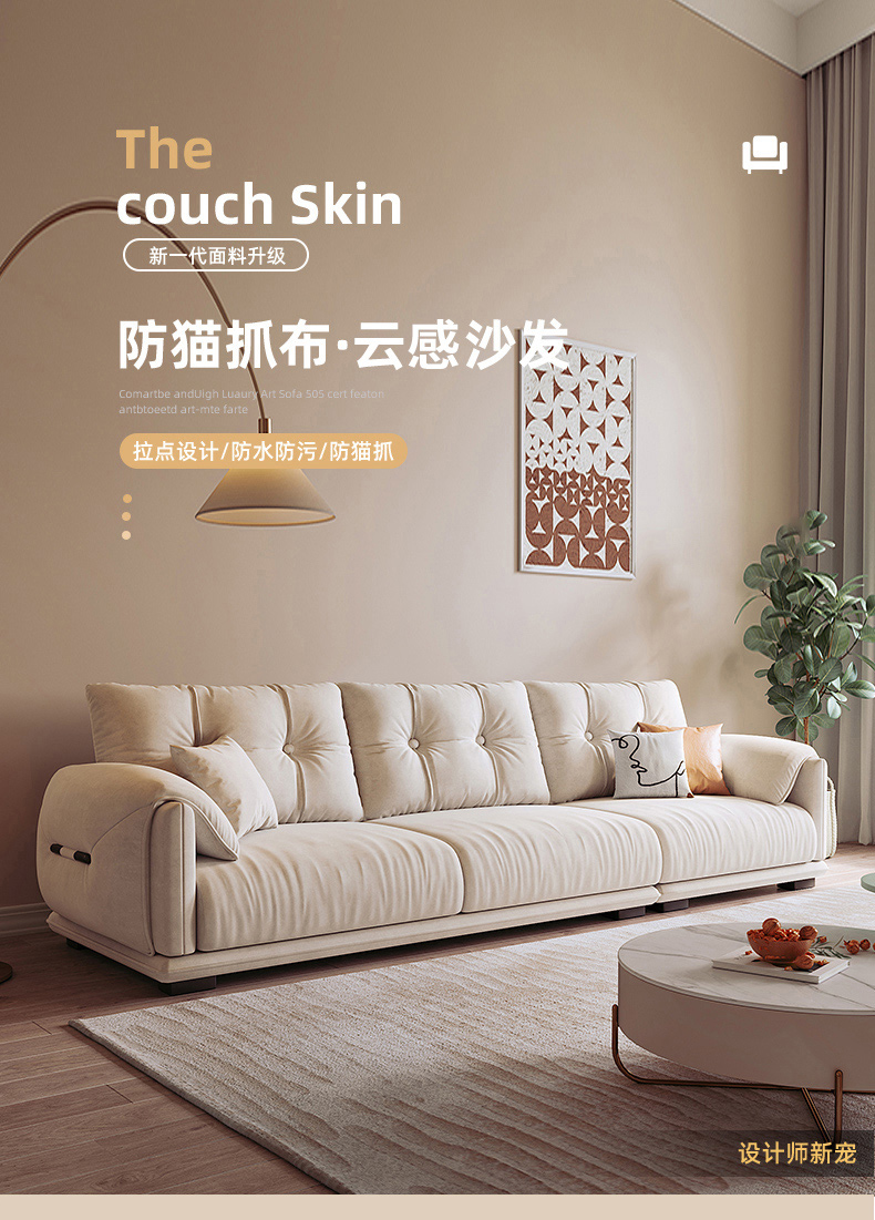 A家家居 现代简约 猫抓皮高密度海绵四面刨实木框架+线径5mm蛇形弹簧实木脚 3.64米直排沙发¥7353