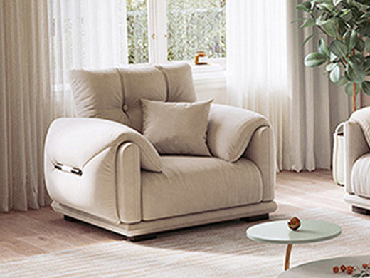非凡工艺 现代简约 绒感猫爪布+框架落叶松木+实木脚 1.15米 单人位 沙发