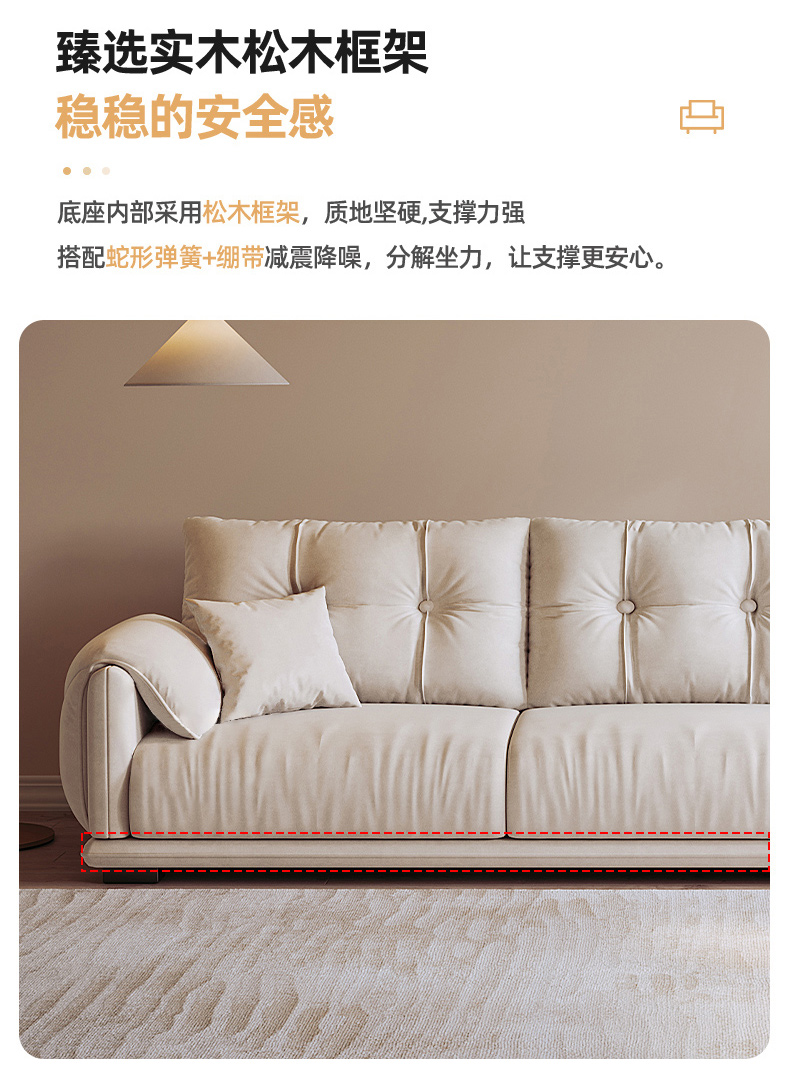 非凡工艺 现代简约 奶油风 羊羔绒+海绵+公仔绵+实木框架+实木脚 布艺1.8米沙发 双人位¥7312