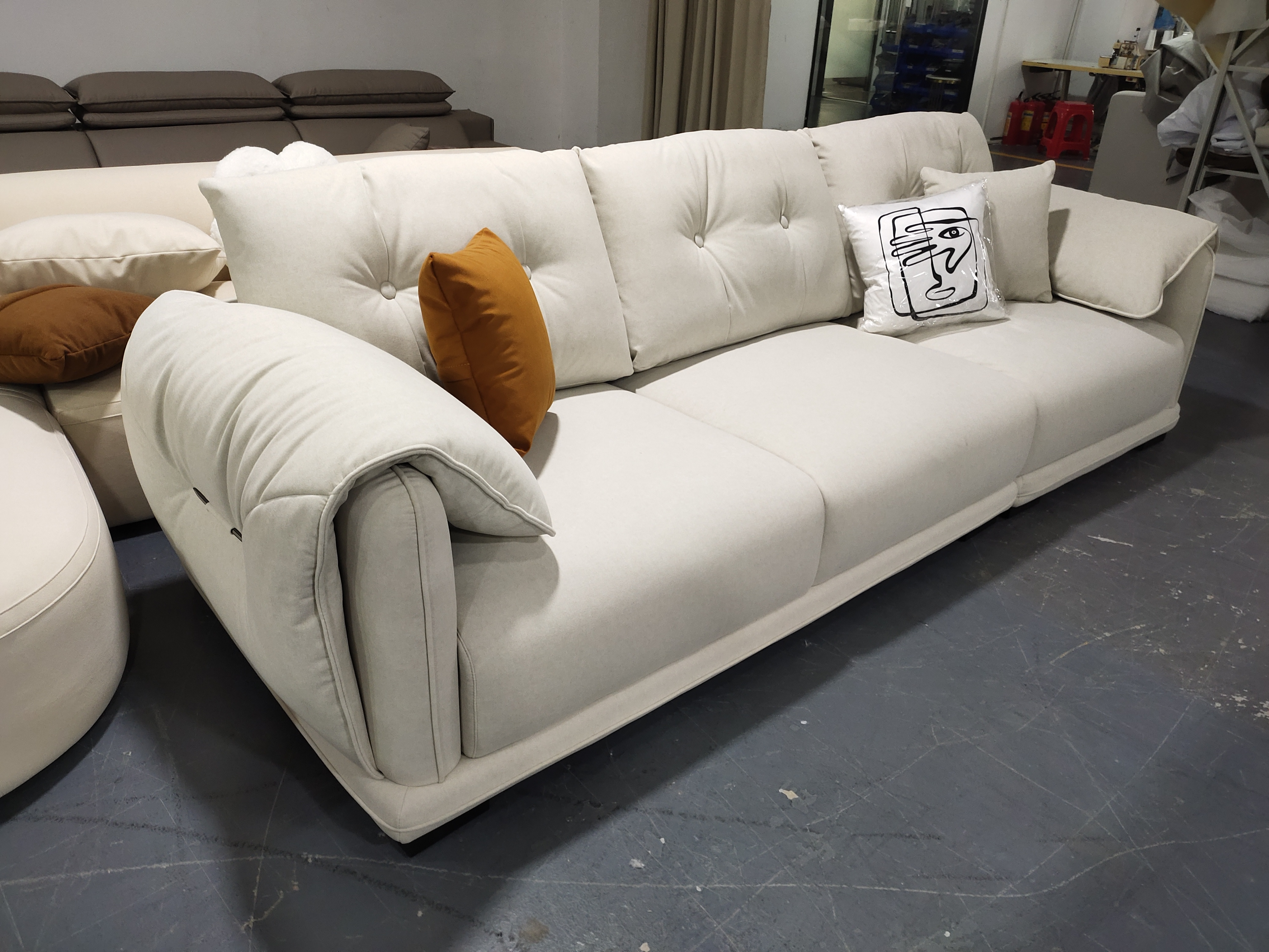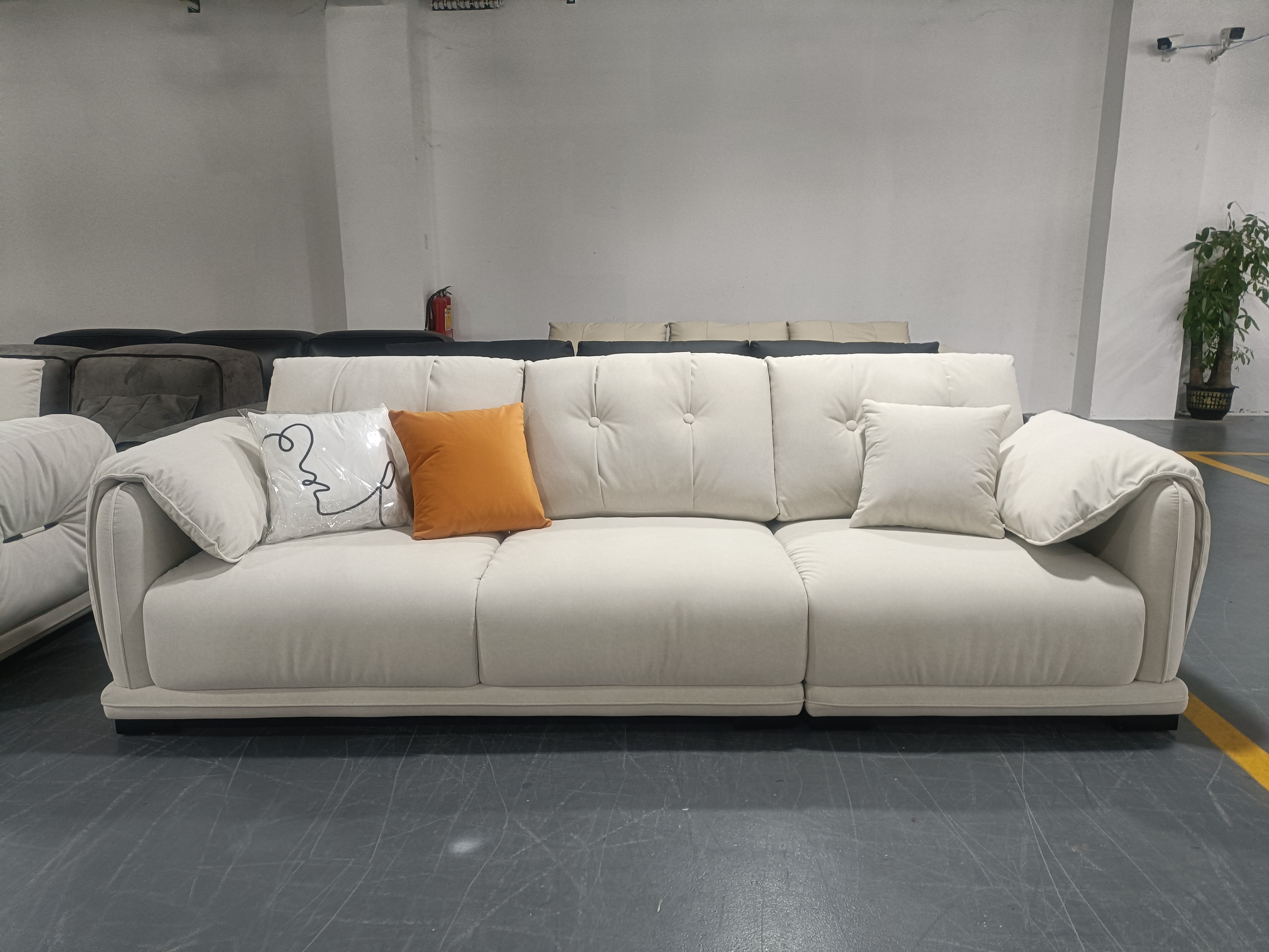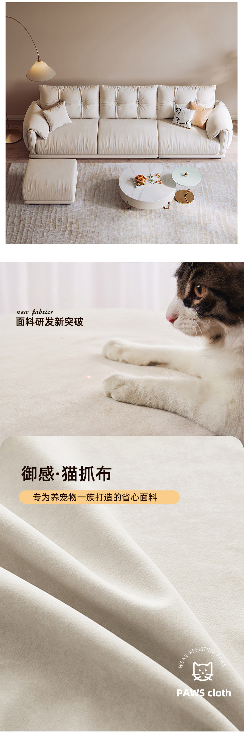 非凡工艺 现代简约 云朵 网红 绒感猫爪布+框架落叶松木+实木脚 2.2米 三人位一体 沙发 |