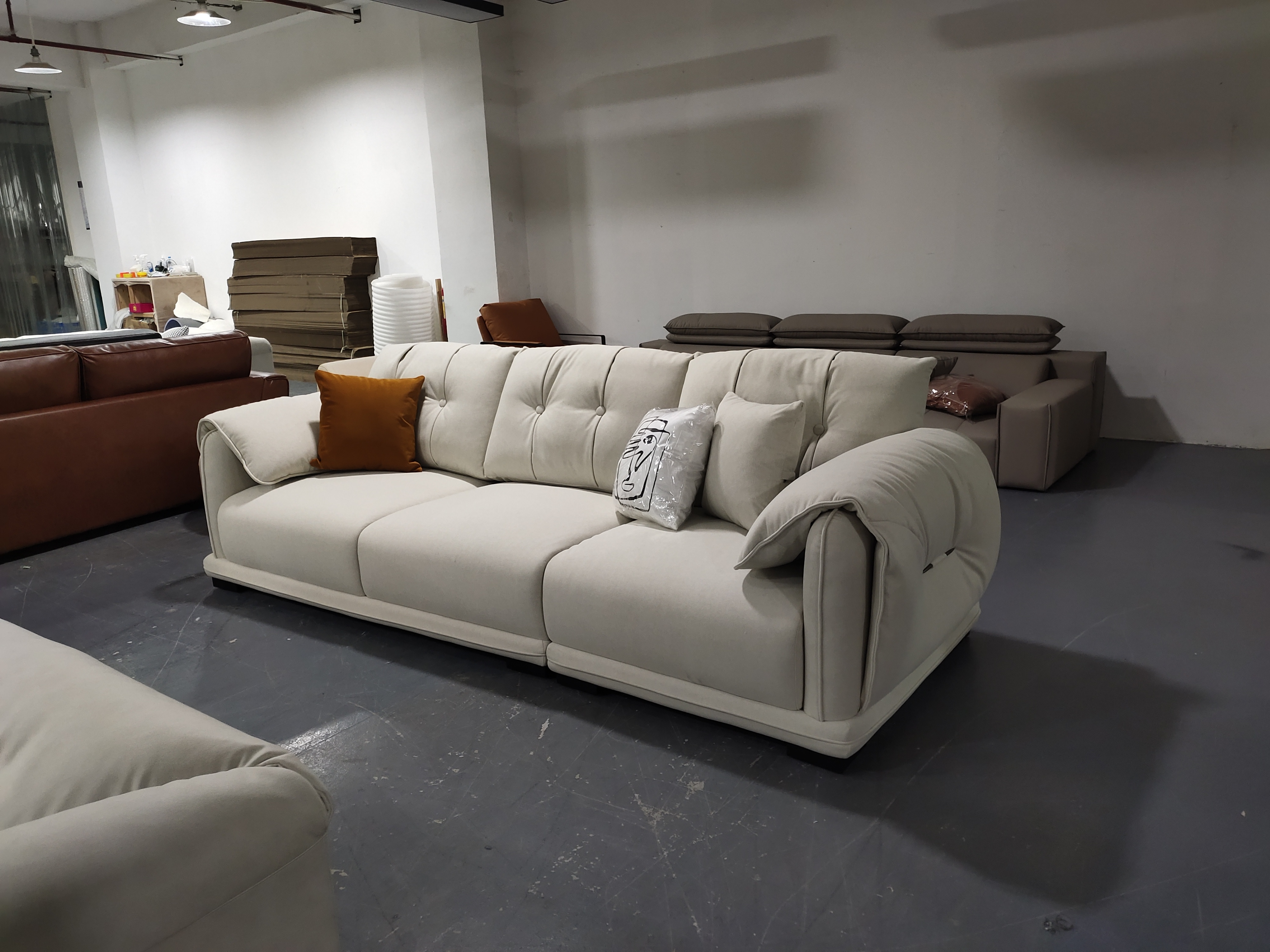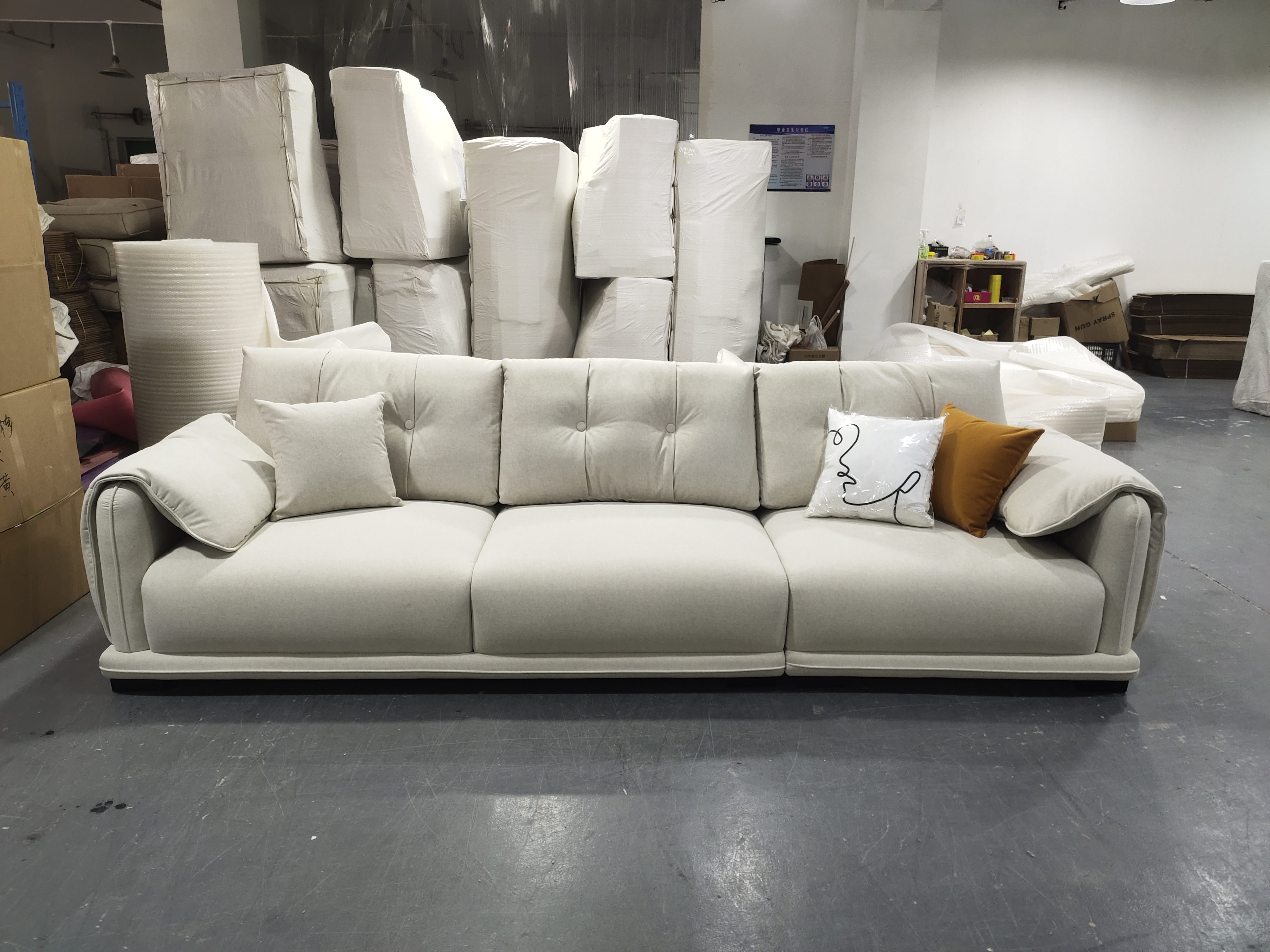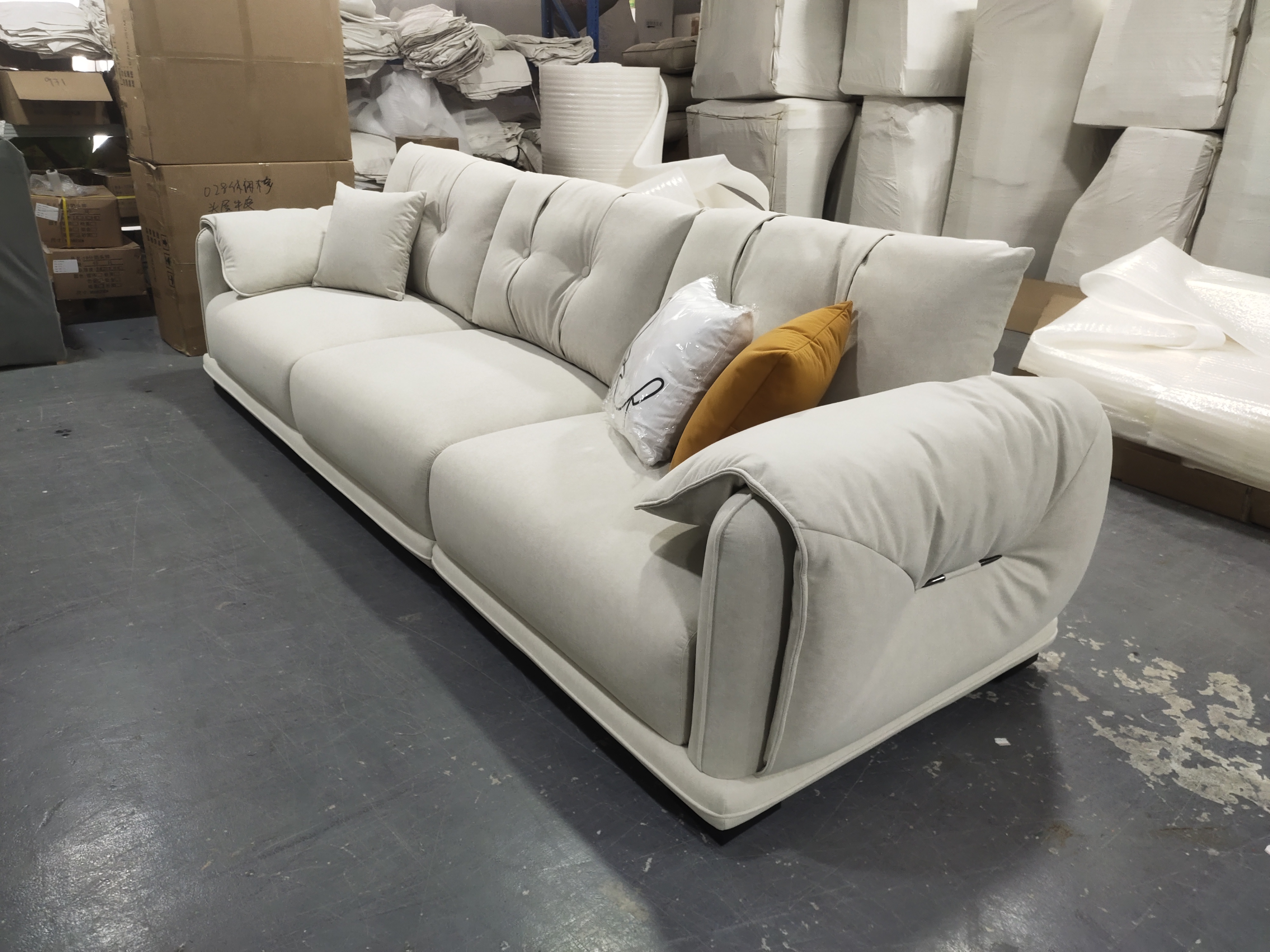 非凡工艺 现代简约 科技绒布料+抛光实木内架(桉木为主)+合成板材框架+蛇形弹簧+定位平衡网格布+绿色高弹力橡筋+靠包填充优质A+公仔棉+坐包填充高密度纯海绵+15公分喷涂五金脚(含2个抱枕)米白 三人位 2.2米沙发¥7312