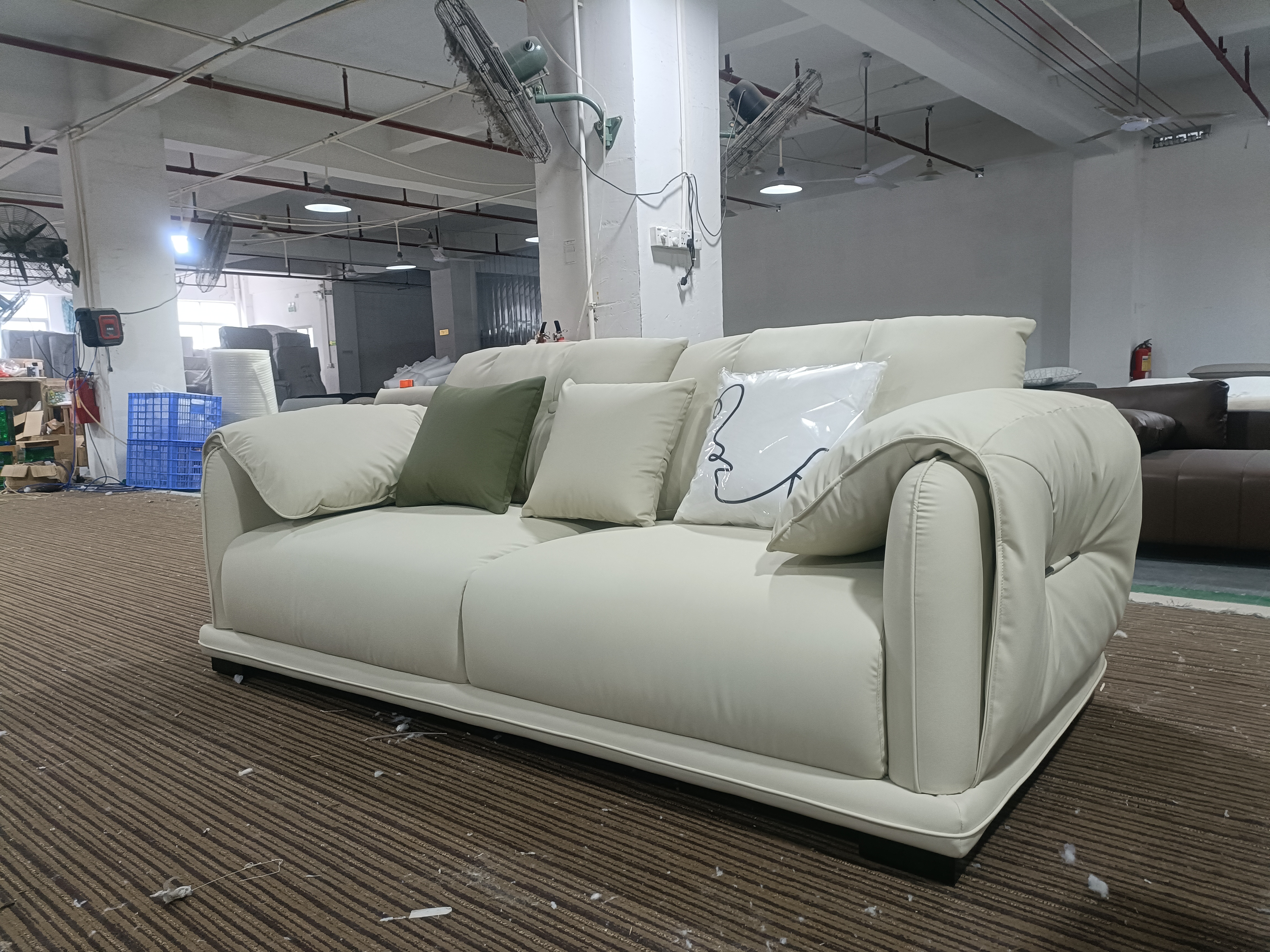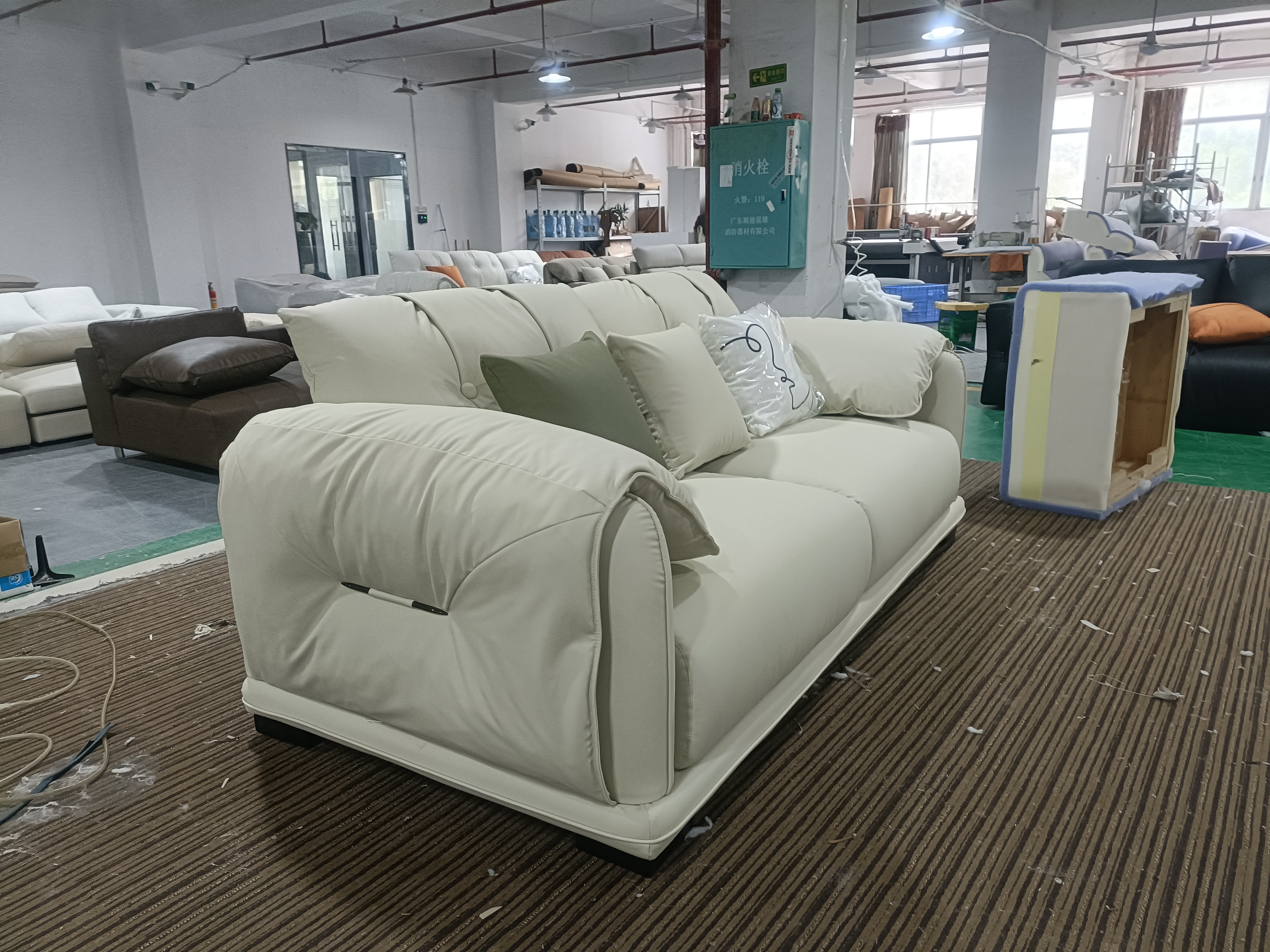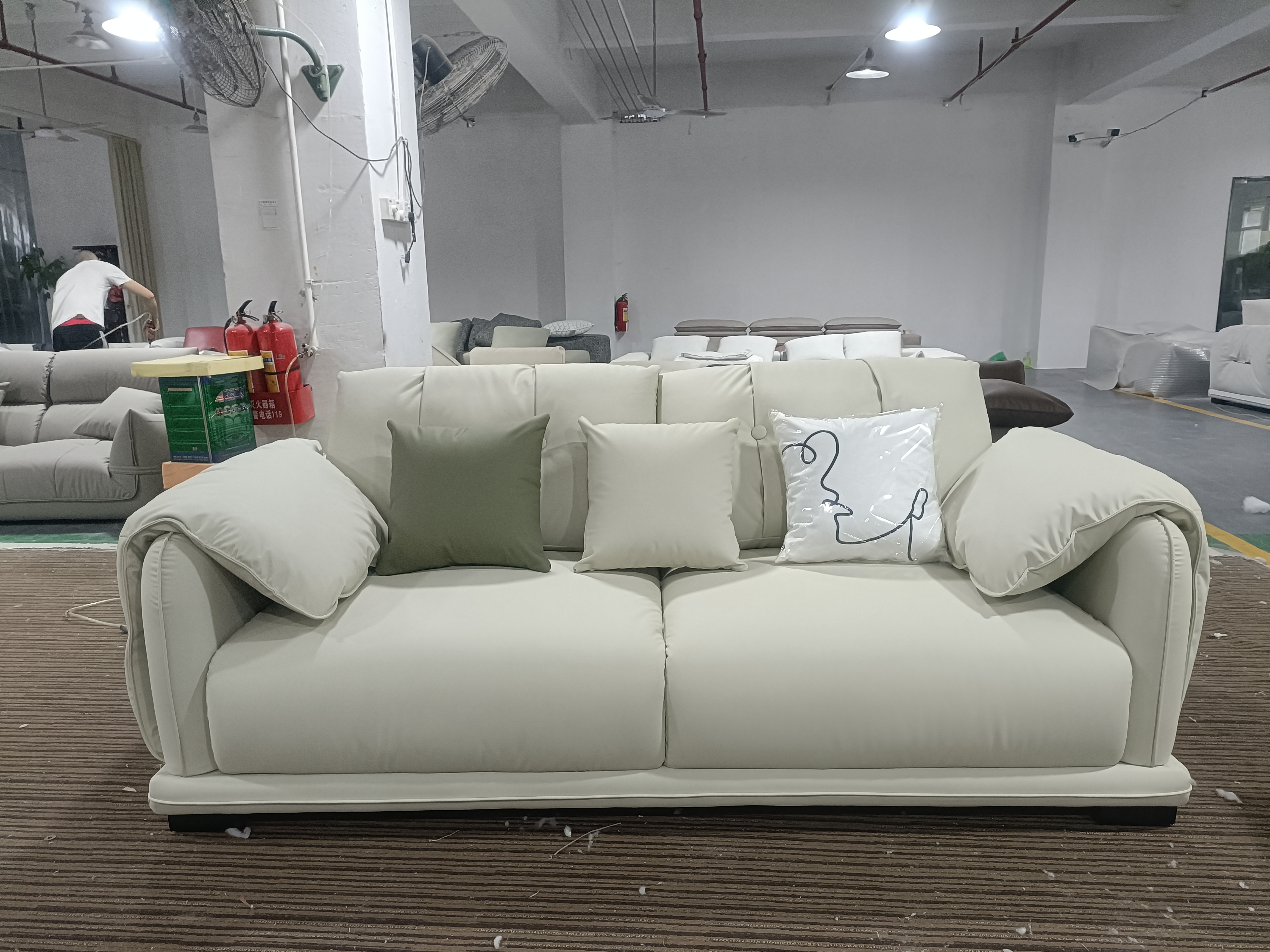 非凡工艺 现代简约 科技绒布料+抛光实木内架(桉木为主)+合成板材框架+蛇形弹簧+定位平衡网格布+绿色高弹力橡筋+靠包填充优质A+公仔棉+坐包填充高密度纯海绵+15公分喷涂五金脚(含2个抱枕)米白 三人位 2.2米沙发¥7312