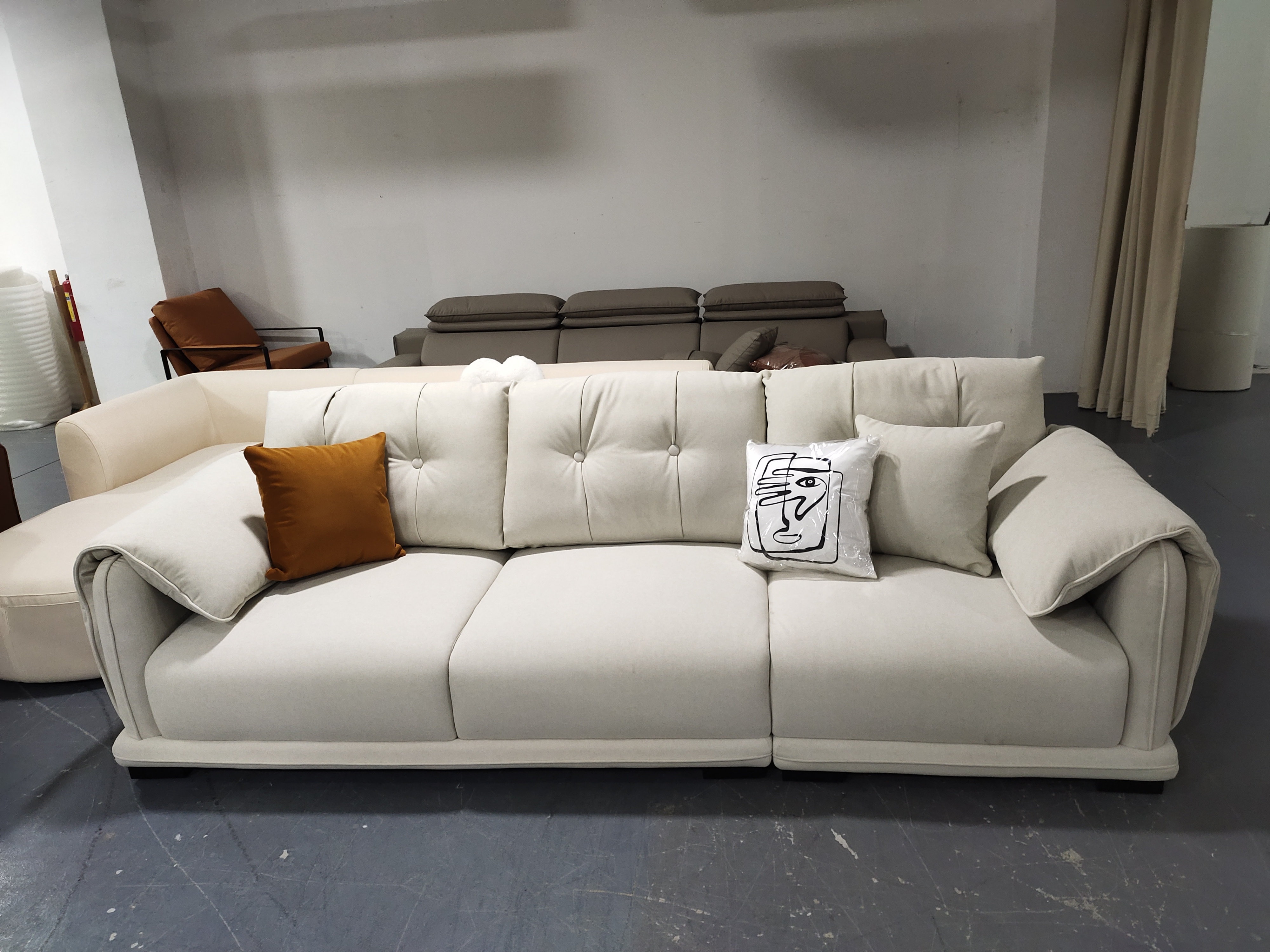 B系优选 现代简约 高级棉麻布+环保西皮+仿皮+优质回弹海绵+框架落叶松木+3A级公仔棉+多层实木夹板+黑砂铁艺脚 3.6米转角沙发 (3+左转角贵妃)