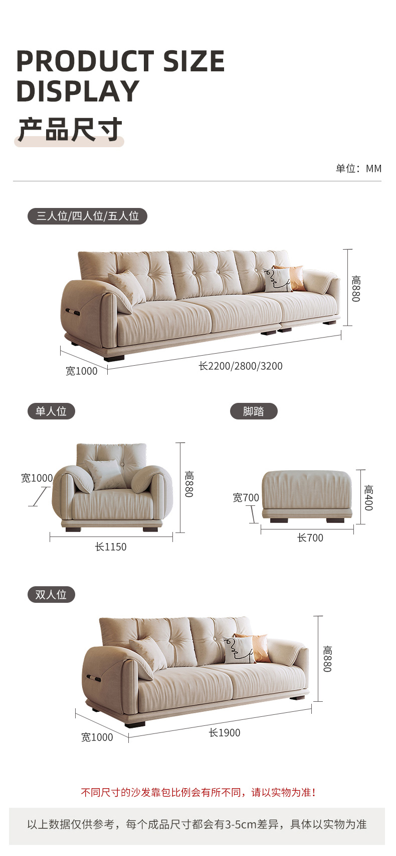 非凡工艺 现代简约 科技布+坐垫+实木落叶松框架 +靠背公仔棉 单人位+四人位+脚踏 组合布艺沙发¥5988