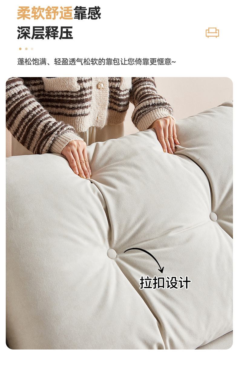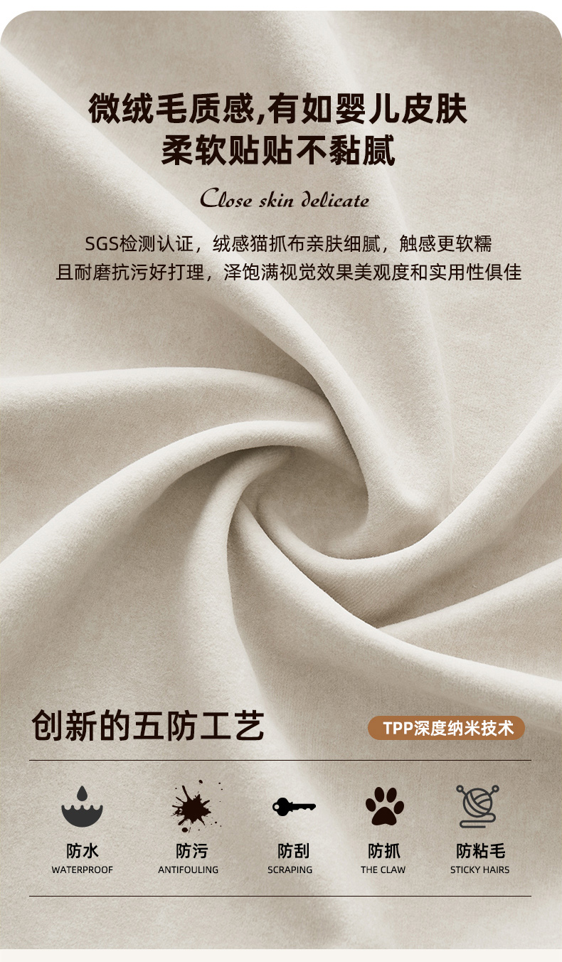 非凡工艺 现代简约 绒感猫爪布+框架落叶松木+实木脚 脚踏