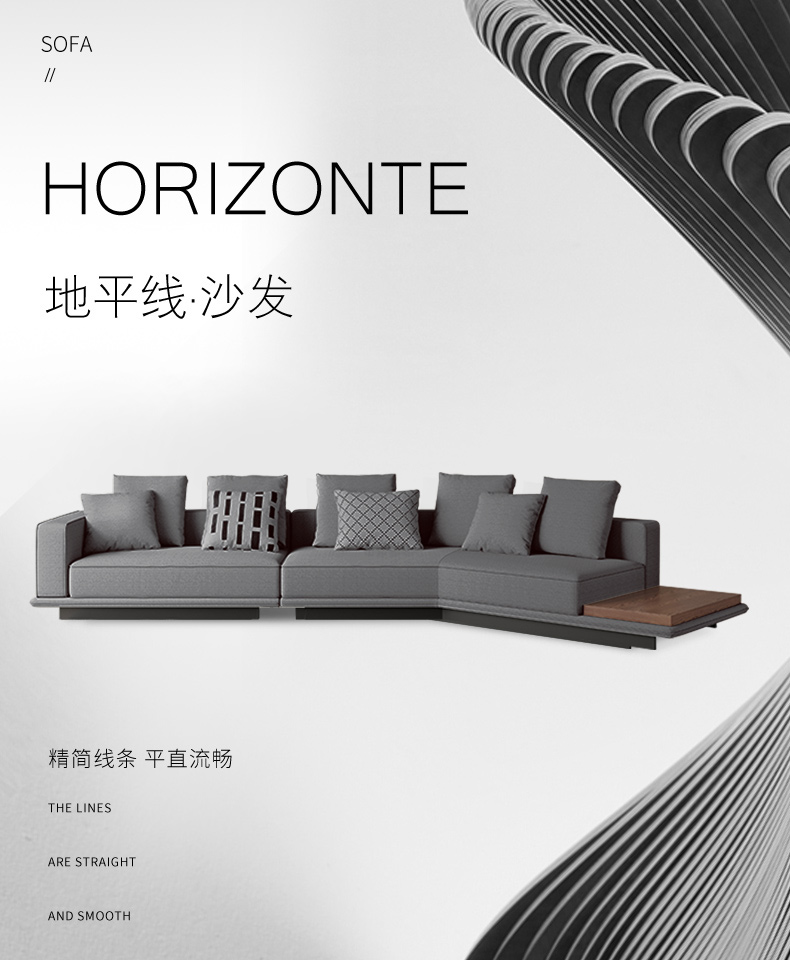 非凡工艺 现代简约 地平线沙发 网红 棉麻+框架落叶松木+多层实木夹板+碳素钢脚 4米3+异形左贵妃 沙发