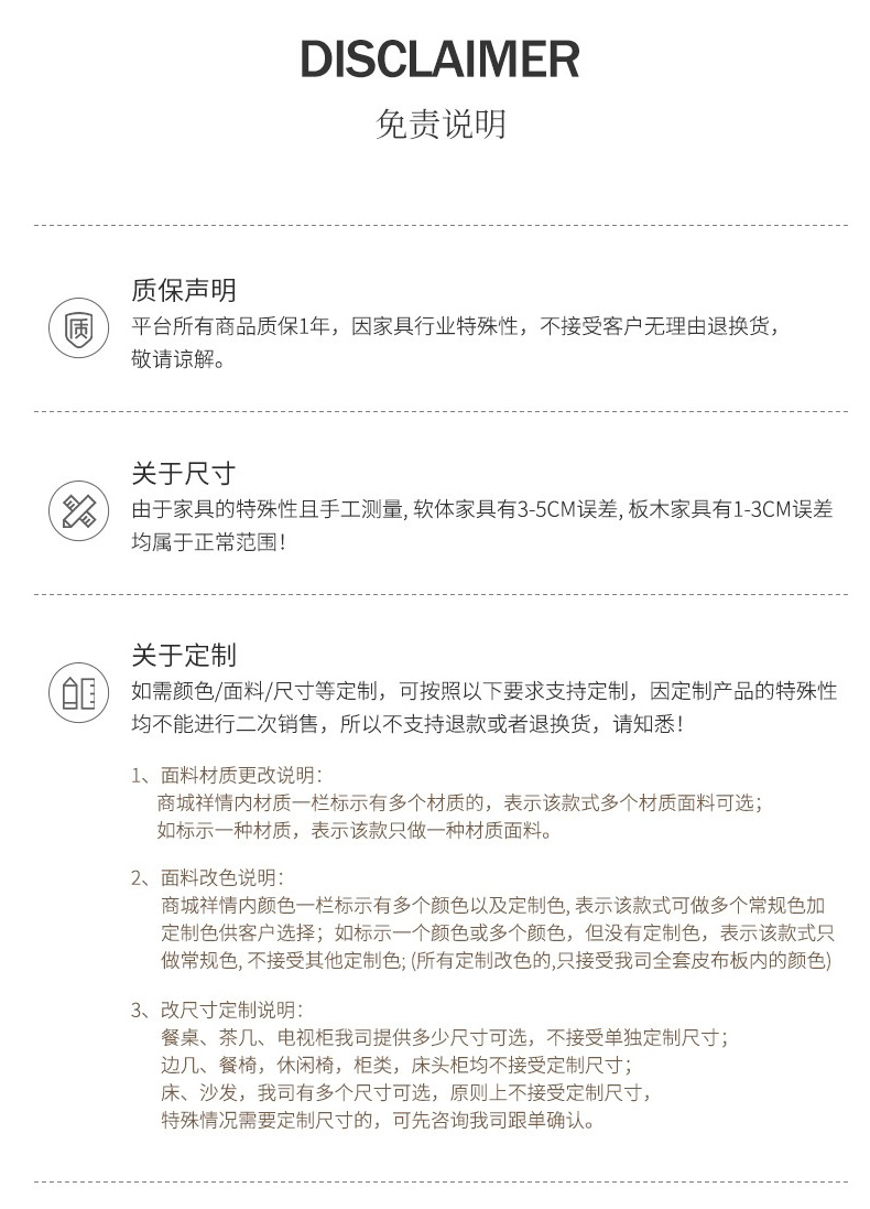 | 是否可定制:可改色不加费用,其他不接受定制,以询问客服为准 | 出厂是否打木架:否 | 一级风格:现代简约 |