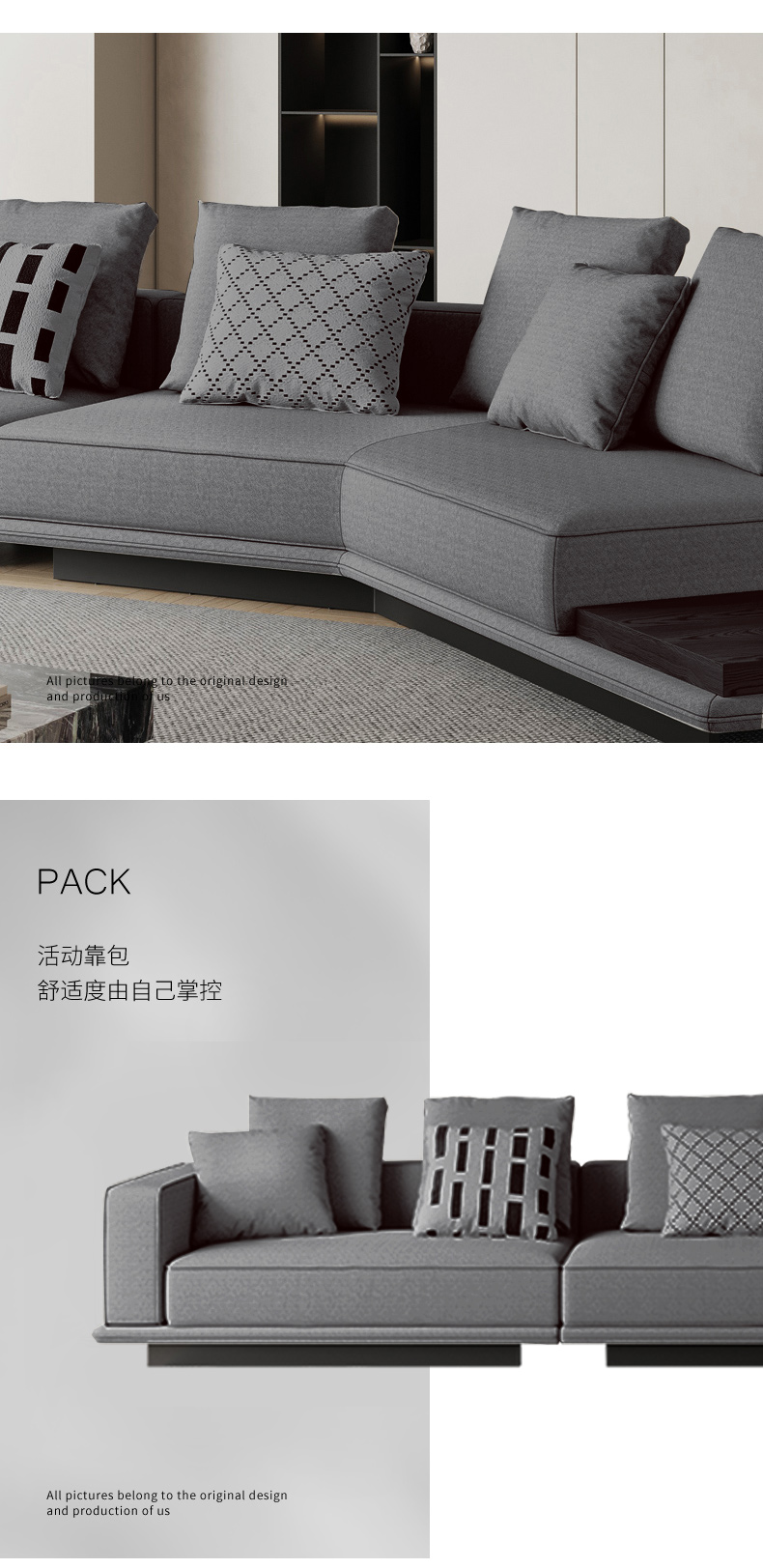 非凡工艺 现代简约 科技布+羽绒公仔靠包+羽绒海绵座包+实木框架+五金镀金脚脚 转角3.4米沙发(3+1+左直角贵妃)非凡工艺 现代简约 接触面头层牛皮+优质回弹海绵+框架落叶松木+绒丝棉+多层实木夹板+5cm黑砂五金脚 左单+右三 2.8米 4人位 沙发