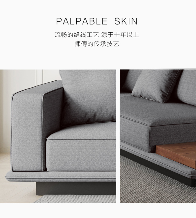 非凡工艺 现代简约 棉麻+优质回弹海绵+框架落叶松木+羽绒公仔棉+多层实木夹板+五金脚 3.6米 分体 直排 沙发