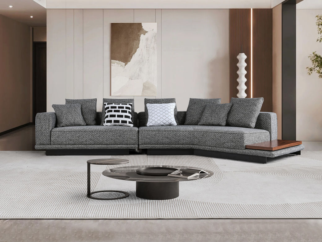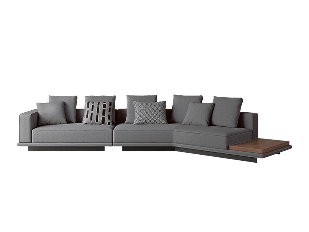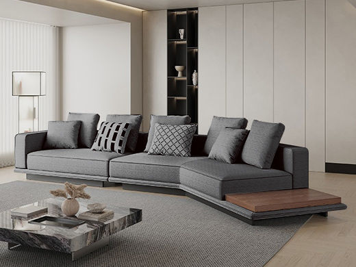 非凡工艺 现代简约 高档三防磨砂布+高密度海绵+松木+桉木+弹簧+橡筋+网布+高档枪黑五金脚 3.92米 1+3+左直角贵妃 布艺转角沙发¥9819