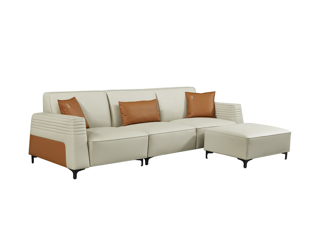 CBD家居 现代简约 优质纳纤皮+东亚海绵+云杉木实木主框架 主色HE12洁白辅色HE01高级灰 四人位+脚踏组合 沙发