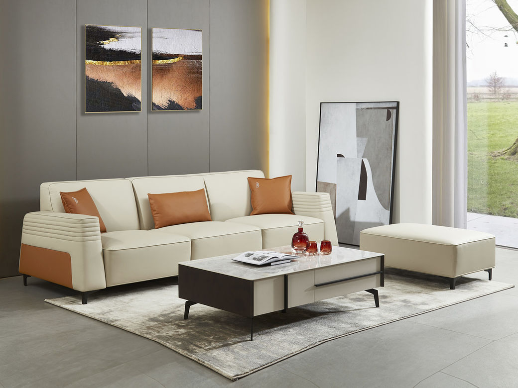 CBD家居 极简 优质纳纤皮+东亚海绵+云杉木实木主框架 主色HE07浅绛色辅色HE02蜡白 单人位+三人位+脚踏 2.2米沙发¥15597