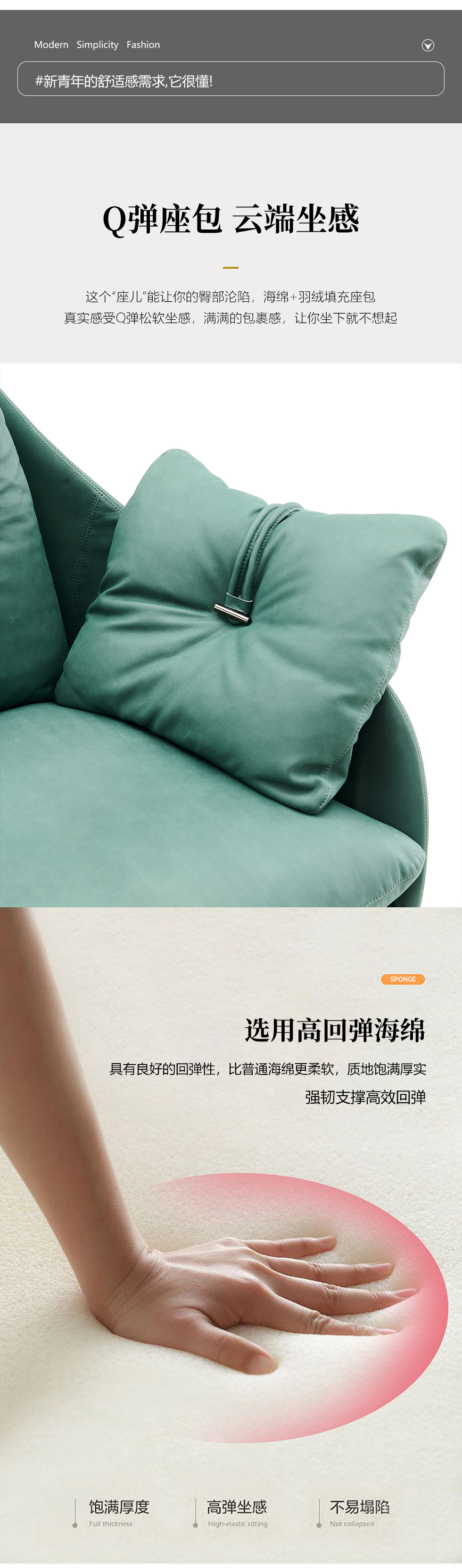 米洛蒂 极简 仿真皮+弯板+高回弹海绵+羽绒填充+拉丝转脚 图片色 休闲椅| 商品详情 | 规格参数 | 评价(0) | 购买咨询() | 产品实拍图 |