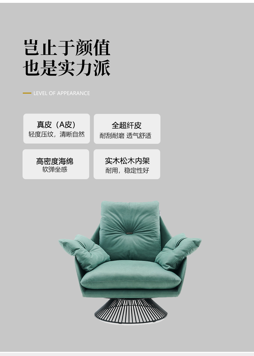 米洛蒂 极简 皮+弯板 高回弹海绵 四星转脚 图片色 休闲椅¥4874