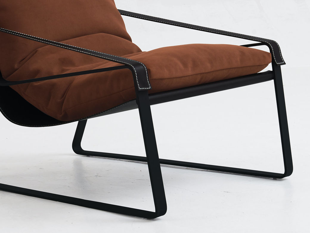 米洛蒂 极简 马鞍皮+布艺+铁架+羽绒填充 图片色 休闲椅