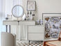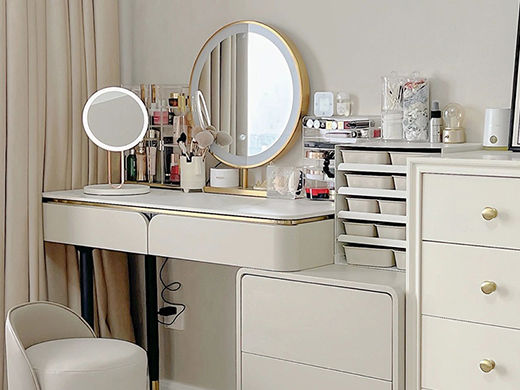 柏思戈 轻奢 岩板+高密度板材+烤漆喷涂+不锈钢钛金 凳子:西皮+弯板+木方 +不锈钢 灰色 0.8米梳妆台 包含凳子、镜子