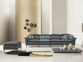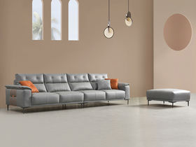 B系优选 极简 高档柔性科技布+全实木落叶松框架+高强度镀金拉簧 灰色 3.44米双扶四人位+脚踏 沙发
