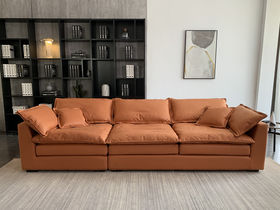 非凡工艺 现代简约 俄罗斯落叶松+蛇形弹簧+弹力繃带框架 高密度回弹海绵+羽绒座包 羽绒靠包 法国绒面料 5公分矮脚 全拆洗设计 图片色 四人位 直排2.8米沙发