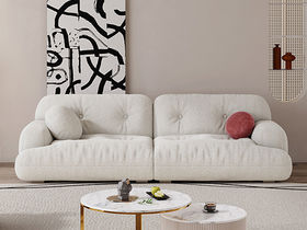 云端 奶油风 羊羔绒+海绵+公仔绵+实木框架+实木脚 图片色 四人位 3米沙发