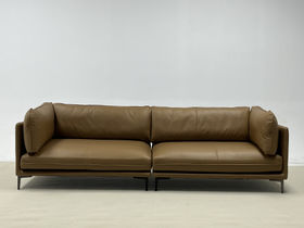 非凡工艺 现代简约 科技布+东亚大豆纤维海绵+俄罗斯樟子松+碳素钢五金脚 咖色 直排四人位 布艺2.8米沙发