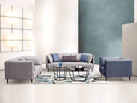 非凡工艺 现代简约 高档柔性科技布+全实木落叶松框架+高强度镀金拉簧 蓝灰色 双扶单人位+双扶二人位+双扶三人位 沙发