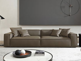 非凡工艺 现代简约 科技布+东亚大豆纤维海绵+俄罗斯樟子松+碳素钢五金脚 直排四人位 网红豆腐块2.8米沙发