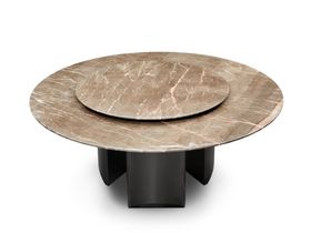 Milos米洛斯 极简 天然大理石面 不锈钢黑拉丝脚架 1.6米餐桌带转盘
