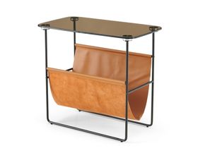 Milos米洛斯 极简 钢化玻璃 超纤皮 碳素钢金属烤漆框架 0.66米边几