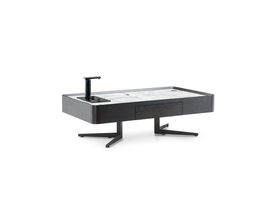 Milos米洛斯 极简 天然烟熏木饰面 天然大理石面 E1级高纤板 环保水性漆 碳素钢金属烤漆脚 1.38米茶几
