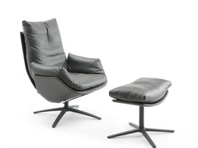 Milos米洛斯 极简 半真皮(A皮)+高回弹海绵+松木架+碳素钢金属烤漆脚 休闲椅