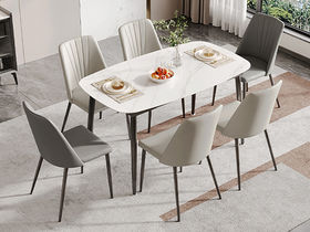 芝华仕 现代简约 E1级环保中纤板+6MM雪花白岩板+烤黑色五金铁管 盛夏光年1.4米餐桌
