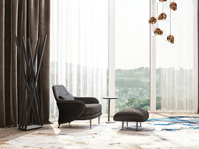 缔造 极简 优质棉麻布+PU做背+弯板+不锈钢电镀枪黑色 灰蓝 休闲椅+脚踏