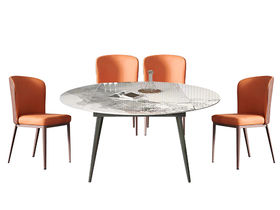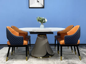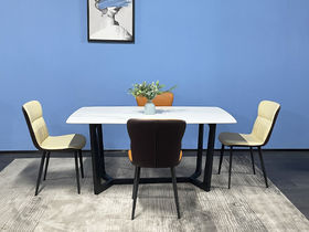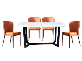 A系优选 现代简约 餐桌:岩板+碳素钢 1.4米 餐椅:西皮+墨兰紫 4把橙色 1.4米餐桌+4把餐椅 (含底板)