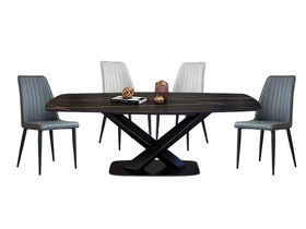 A系优选 现代简约 餐桌:岩板+碳素钢 1.4米 餐椅:西皮+黑砂 2把浅灰色+2把深灰色 1.4米餐桌+4把餐椅 (含底板)
