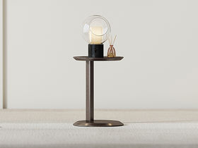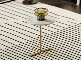 鹿屿 轻奢 天然石中花白+金属 0.4米圆形边几