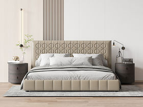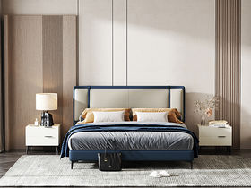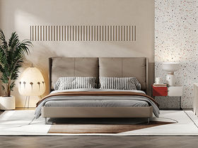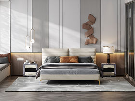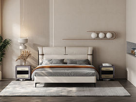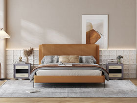 Minttu明途 极简 实木框架+海绵+靠包羽绒+生态真皮+仿皮+五金脚 皮床 1.8米