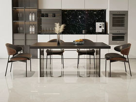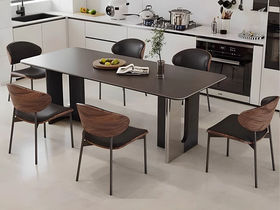 中古·尚 中古风 岩板+E1级中纤板+仿真木皮+电镀不锈钢+底板 1.4米餐桌