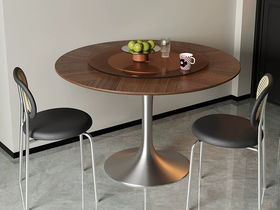 中古·尚 中古风 电镀不锈钢脚+多层实木板面+仿真木皮(不含转盘) 1.1米餐桌