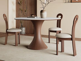 中古·尚 中古风 岩板+多层实木板+仿真木皮+底板(不含转盘) 1.2米餐桌
